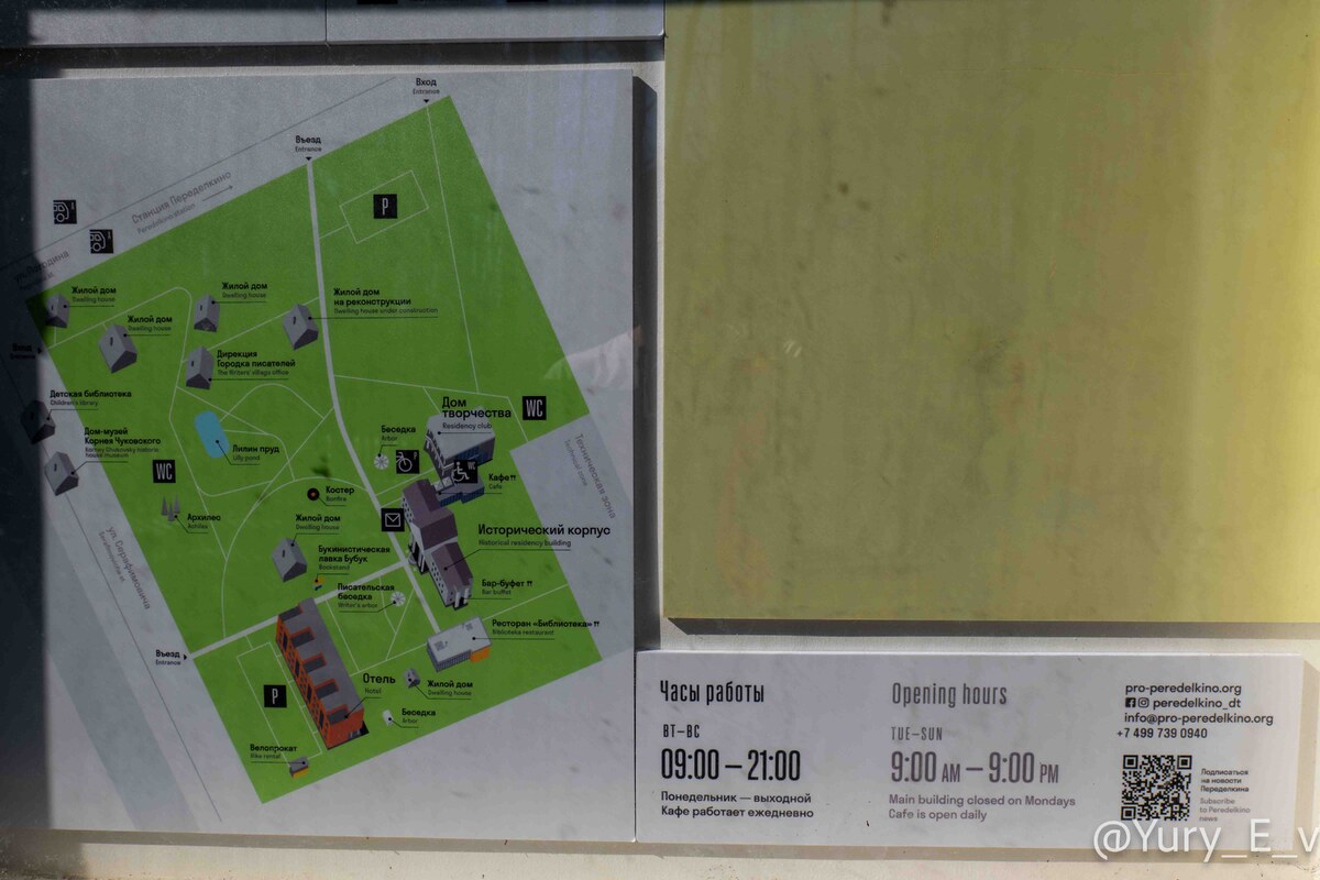 Маршрут и парковка. Будьте внимательны, яндекс ведет ко входу в парк, там буквально 2 парковки, они на 10-15 машиномест и практически все заняты. Вокруг Переделкино, местные понавтыкали знаки парковка запрещена - эвакуация, где правда где нет, не понятно. Оптимально добираться до большой парковки у собора Игоря Черниговского и оттуда начинать маршрут. Рядом находится жд станция "Переделкино", оптимальная нулевая точка для старта.
