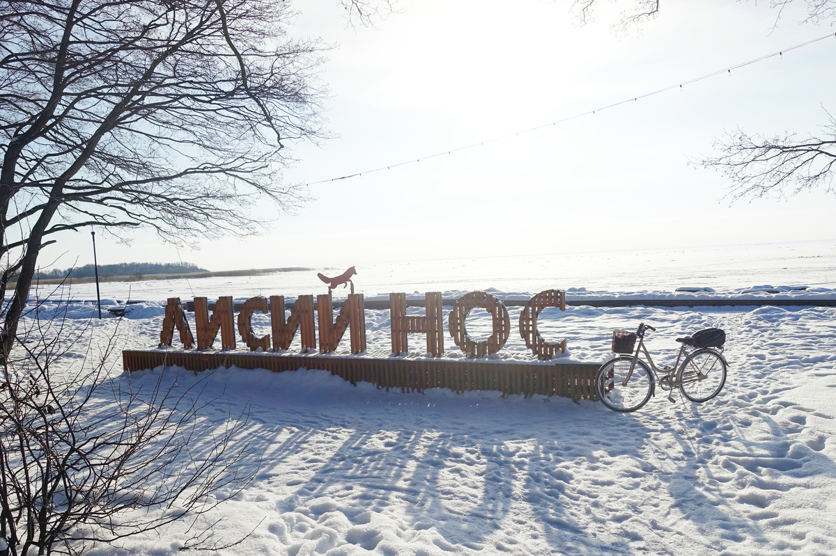 Снег чистится техникой также, как и в городе: Проезжаем среди деревьев по Полянской дороге: Заезжаем на площадь, мемориал "Дорога мужества" и пляж "Морские Дубки": Обратно, в закате возвращаемся той же дорогой: