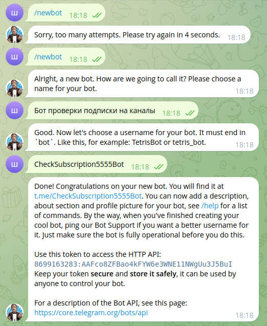 Проверка наличия подписки на каналы/группы преследует множество целей, но основные из них следующие: Использовать будем конструктор ботов NinjaBot. Для начала переходим в BotFather и создаём в нём бота. - /start - Нам предлагается выбрать название бота - Нам предлагается выбрать username бота Переходим в NinjaBot и нажимаем кнопку добавления бота Для новых пользователей платформа выдаёт бесплатный тариф на 7 дней без каких либо ограничений в функционале и без какой-либо рекламы. Следующим шагом необходимо добавить бота администратором в каналы или группы на которые требуется проверять наличие подписки. Далее переходим в настройки основного сценария бота И используя правую кнопку мыши создаём блок условия И нажимаем на кнопку "Добавить условие". Конструктор предлагает множество встроенных проверок, но нам нужна лишь проверка наличия подписки на группы и каналы. Выбираем группу на которую будем проверять наличие подписки