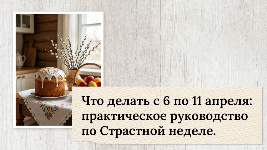 это не про формальные запреты, а про состояние человека — внимание, тишину и уважение к происходящему. Разберём по дням — что делать, чего не делать и на чём держать фокус. Понедельник (6 апреля) — начало внутренней уборки Это день входа в Страстную неделю.