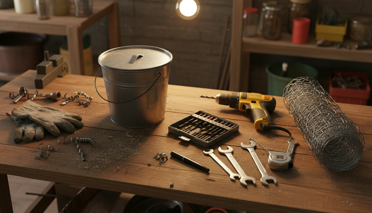 Мини-проверка «прямо сейчас»: если у тебя уже есть ведро с крышкой, дрель и кусок сетки — ты фактически на старте. Остальное докупается по месту.