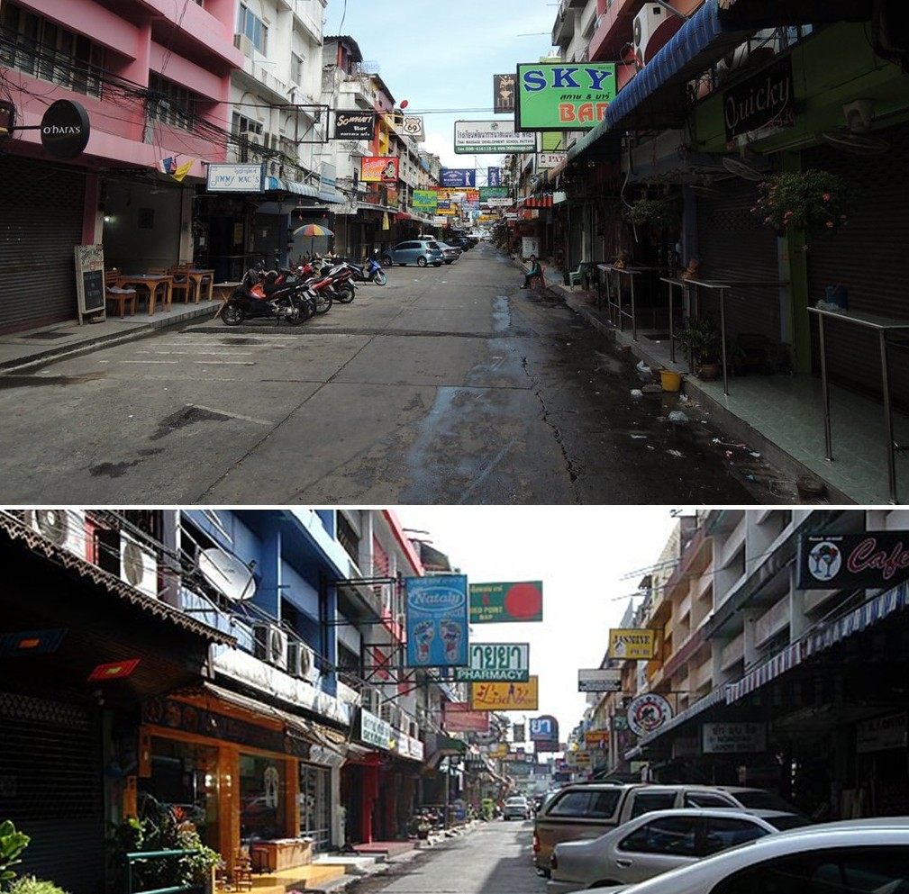 В 2011 году Сой-Сикс на рассвете представал совсем иным. После бурной ночи, когда неоновые огни затухали, эта улочка, связывающая Бич-роуд и Секонд-роуд, погружалась в мирное спокойствие. Фотографии того времени передают эту атмосферу города, который только-только пробуждался. Закрытые бары с опущенными роллетами стояли вдоль дороги, намекая на бурную ночь. Над ними виднелись яркие вывески заведений — баров, кафе и магазинчиков, которые еще недавно наполнялись музыкой и смехом. Мотоциклы мирно стояли у тротуаров, а пустые столики и стулья ожидали вечерней суеты. Улицы казались сонными. Мягкий утренний свет отражался от влажного, свежеумытого асфальта. Несколько местных жителей готовились к новому дню. Такая тишина вызывала легкую ностальгию, понятную лишь ранним пташкам и старожилам Паттайи. В эти часы Сой-Сикс раскрывала свою другую грань – расслабленную, обыденную и удивительно спокойную. Многие вспоминали свои утренние прогулки здесь, узнавая знакомые вывески и с улыбкой вспоминая с