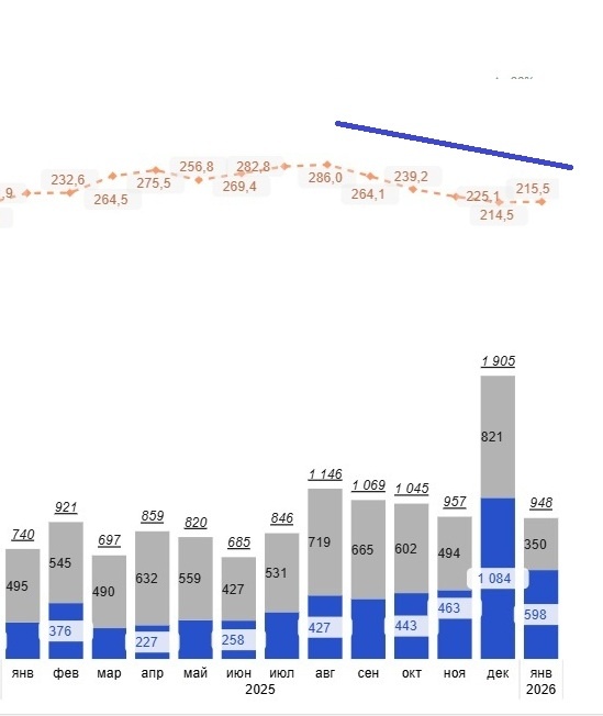 И формально даже есть к чему привязаться: за период с сентября 2025 по январь 2026 года средняя цена квадратного метра в сделках в новостройках действительно снизилась с 286 до 215 тысяч рублей за квадрат. Почти минус 25 % (по данным bnmap.pro).