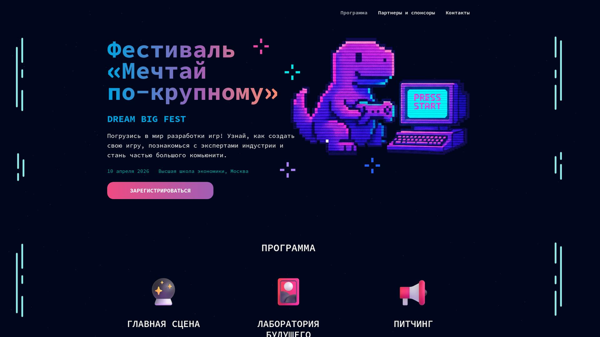 10 апреля 2026 года в московской Высшей школе экономики пройдет фестиваль Мечтай по-крупному, также известный как Dream Big Fest. Мероприятие посвящено разработке видеоигр и объединит начинающих специалистов и опытных экспертов индустрии. Гости смогут узнать о создании собственных проектов и познакомиться с представителями профильных компаний. Программа фестиваля разделена на тематические площадки. На Главной сцене пройдут выступления спикеров и дискуссии о трендах геймдева. В зоне Лаборатория будущего школьники и начинающие разработчики смогут на практике попробовать свои силы в создании видеоигр под руководством наставников. Для демонстрации проектов жюри предусмотрена отдельная площадка питчинга, где выступят финалисты Национальной технологической олимпиады. Помимо образовательной части на территории будут работать развлекательные и партнерские зоны. В Игровой зоне посетители смогут протестировать проекты студентов и открыть для себя новые тайтлы. Индустриальная зона предназначена д