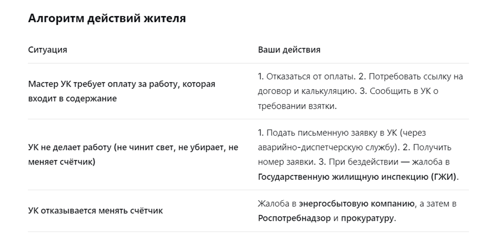В основе анализа нормативных документов (Правила № 491, Постановление № 290, Жилищный кодекс РФ) подготовил структурированную выжимку. Ключевой принцип: всё, что относится к общему имуществу МКД, обслуживается за счёт средств, которые вы ежемесячно платите по статье «Содержание жилого помещения». Дополнительная плата за эти работы незаконна. Что бесплатно: Платят собственники: Согласно п. 5 Постановления № 491 (о составе общего имущества), стояки холодного и горячего водоснабжения, отопления, канализации до первого отключающего устройства, а также отопительные приборы, не имеющие запорной арматуры, относятся к общему имуществу МКД. Их обслуживание и ремонт — обязанность управляющей организации, оплаченная в тарифе «содержание жилья». Отключение стояка для замены радиатора, ремонта труб в квартире или устранения аварии — обязанность УК, выполняемая бесплатно. Однако: Если сантехник требует оплатить «услугу по отключению стояка» — это незаконно. Это входит в тариф «содержание». Работы по