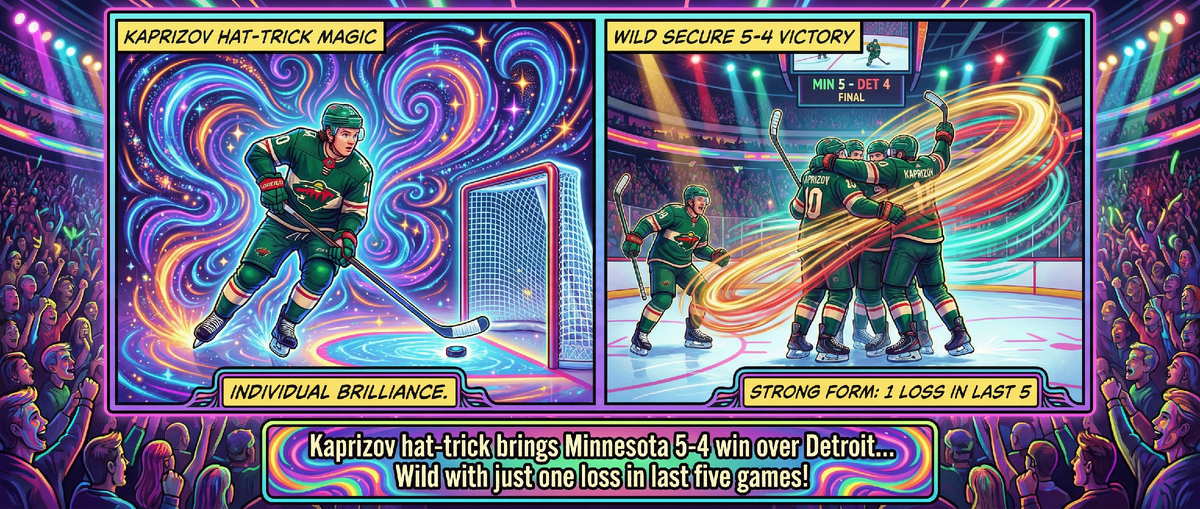 Кирилл Капризов сделал хет-трик в матче с Детройтом и принес Миннесоте победу 5:4.