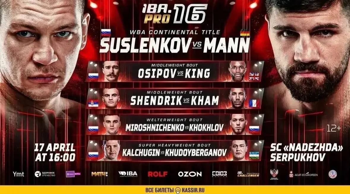 Большой бокс в Серпухове». Зрителей ждут титульные противостояния и яркий кард с участием сильнейших атлетов мира. ➡️Главным событием вечера станет 10-раундовый поединок в тяжёлом весе. Непобежденный российский боксер, обладатель титулов IBF Europe и IBA.PRO Intercontinental Артём Сусленков выйдет на ринг против опытного представителя Германии Артура Манна. На кону — престижный титул WBA Continental. Для Сусленкова, занимающего 13-е место в мировом рейтинге WBA, этот бой станет серьезным испытанием: за плечами его оппонента поединки с такими легендами, как Сергей Ковалёв и Майрис Бриедис. Программа турнира насыщена статусными встречами: ⏩Бой за титул IBF Asia: россиянин Михаил Григорян (8-0) сразится с опытным филиппинцем Джо Сантисимой. ⏩Международное противостояние: призёр чемпионатов России Юрий Осипов встретится с британцем Майклом Кингом, а выступающий за Сербию Алексей Шендрик — с французом Реда Хамом. ⏩Опыт мирового уровня: на ринг выйдет Никита Мирошниченко — бывший спарринг