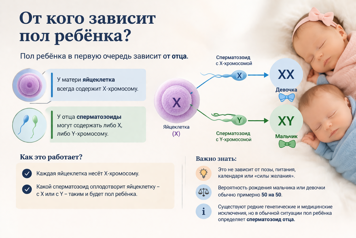 То есть какой сперматозоид первым оплодотворит яйцеклетку, таким и будет генетический пол ребёнка.