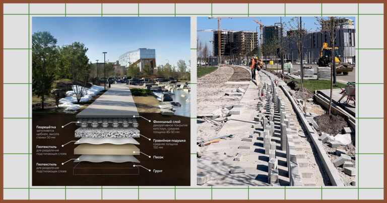 Чудо-покрытие анонсировали на территории «СберСити». Как утверждает застройщик, это будет первый в стране проект внедрения концепции впитывающей городской среды в таком масштабе (сроки завершения работ пока не уточняются). Специальное слоеное покрытие будет аккумулировать природные осадки с помощью зеленых зон и проницаемых материалов. В состав «пирога» войдут сразу шесть слоев — помимо верхнего пористого еще два из геотекстиля, плюс гравийная подушка, песок и георешетка. Замена ливневки, впрочем, будет лишь частичной — на пешеходных дорожках. А поскольку дождевую воду надо отводить еще и, например, с крыш (которые таким ковром не накроешь), кое-где новое покрытие будет не заменять, а дополнять традиционную канализацию, которой в «СберСити» проложат аж 45 км с очистными установками и комплексом ультрафиолетового обеззараживания. По замыслу авторов проекта, каменный ковер должен снизить нагрузку на трубы ливневки примерно как на другом конце Москвы Некрасовская линия по утрам разгружает