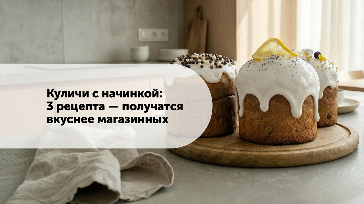 Если раньше вы не пробовали печь куличи с начинкой — начните с первого рецепта. Творожное тесто без дрожжей прощает ошибки, а крем «пломбир» из двух ингредиентов сложно испортить. Когда набьете руку, переходите к дрожжевому с карамелью или к лимонному с курдом — они требуют чуть больше времени, но и результат другой.