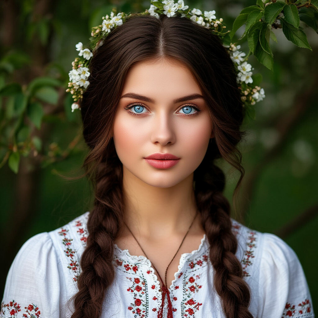 На другой день, к вечеру, когда солнце уже не пекло, а только мягко золотило верхушки деревьев, Настя вышла из дома. На ней было то самое ситцевое платье в мелкий цветочек, в косы вплетена алая лента, а на голове — венок из полевых ромашек, сплетенный только что, перед самым выходом.