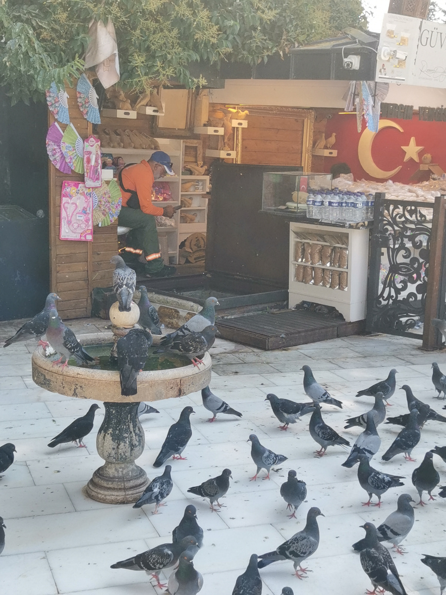 Спустившись с холма Пьера Лоти к мечети Эйюп, я обратила внимание на необычное количество разгуливающих голубей. В отличие от вездесущих чаек, здесь их было поразительно много. На площади, вокруг красивого фонтана, люди активно кормили птиц зерном, которое продавалось в соседних ларьках. Видимо, это действо когда-то превратилось в популярный аттракцион для туристов и местных жителей. Такое обилие голубей на площади Эйюп – не случайность, а результат многовековых традиций. Кормление птиц у мечетей воспринимается верующими как благое дело и форма милостыни, приносящая благословение и помогающая душам усопших. Мечеть Эйюп и прилегающая площадь – одна из главных исламских святынь Турции. Здесь находится гробница Эйюпа, друга и знаменосца пророка Мухаммеда. Поэтому кормление птиц в этом месте – религиозный акт милосердия. Голубей никто не отгоняет, и они свободно перемещаются по территории мечети. Считается, что их воркование создает спокойную и умиротворяющую атмосферу. В исламе голубя наз