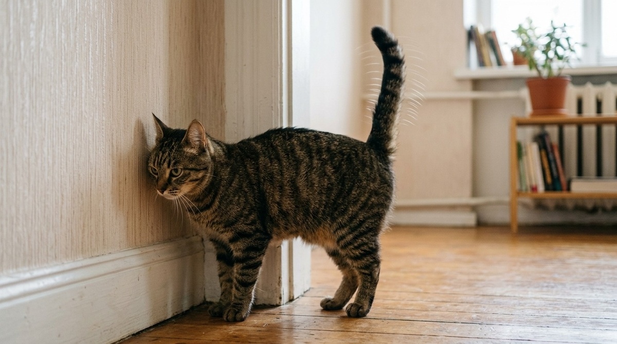 Оказывается, в доме могут присутствовать запахи, которые для кота звучат как вторжение. Кот не выдумывает угрозу, он реально её чует. И отвечает так, как умеет: метит снова.