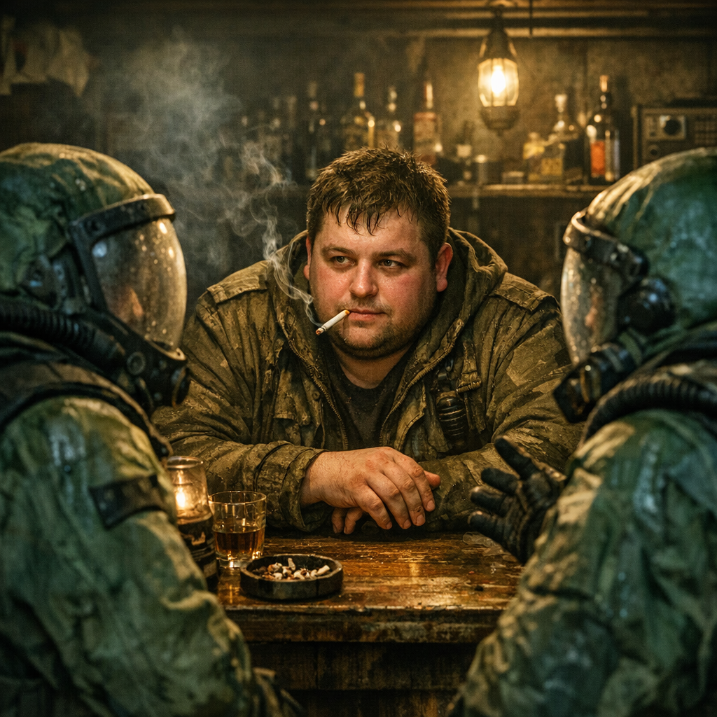 Кордон дышал предрассветной сыростью и запахом дешевого табака, пропитавшим стены бара Сидоровича. Внутри, за барной стойкой, дремал Килька – толстощекий паренек, прозванный так за вечные шутки торговца про консервные банки. Внук самого Сидоровича, он, казалось, унаследовал от деда только умение наливать и обманывать пьяных сталкеров. О славе и богатстве приходилось лишь мечтать, глядя на хмурых сталкеров, которые заходили сюда погреться и промочить горло.