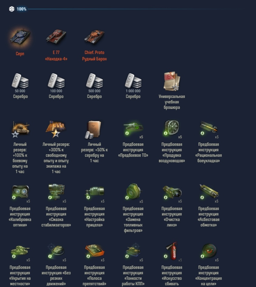 - За прохождение всех этапов прогрессии: до 20 контейнеров.