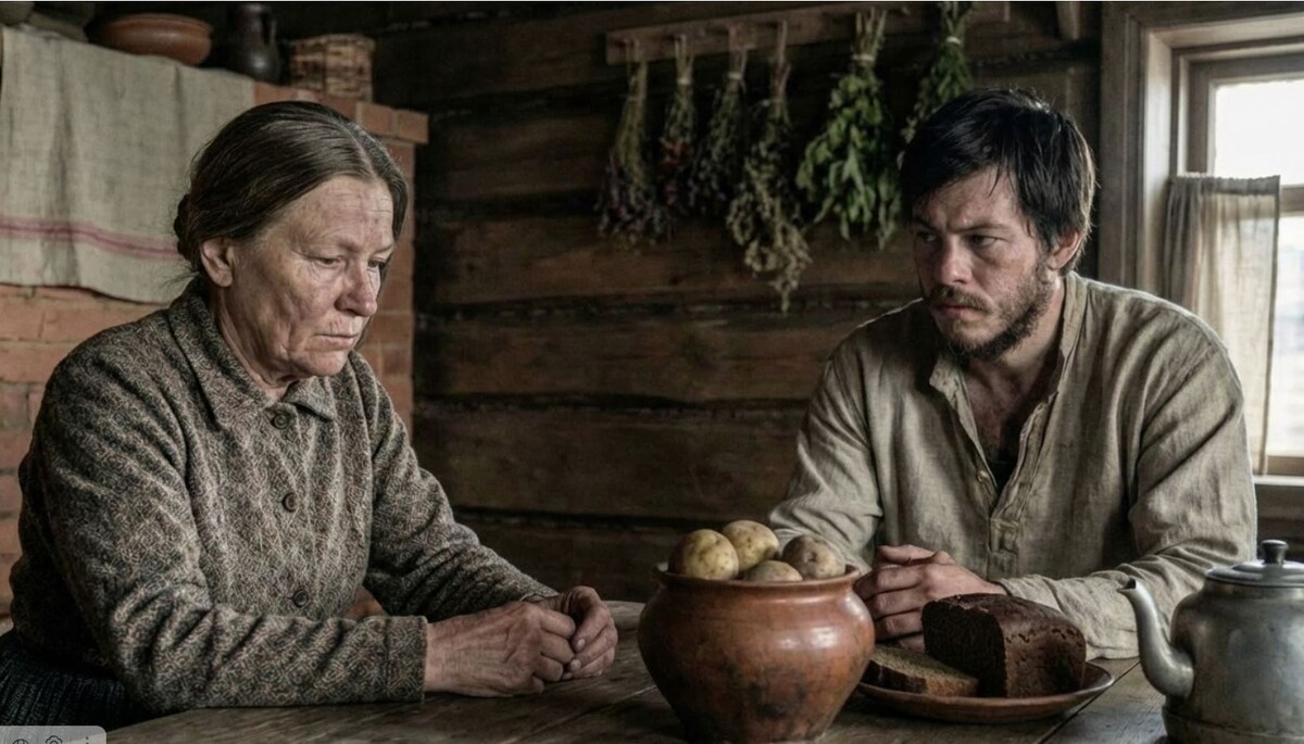 Кондрат вернулся домой чуть раньше обычного, в избе стоял тот особенный вечерний порядок, в котором всё было знакомо с детства до последней мелочи. Евдокия вместе с Полиной сидели у подтопка, перебирая семенной лук. Луковицы шуршали в ловких женских руках, от печи тянуло сухим теплом, а у самого порога, присев на корточки, Фрол ладил черенки к лопатам.