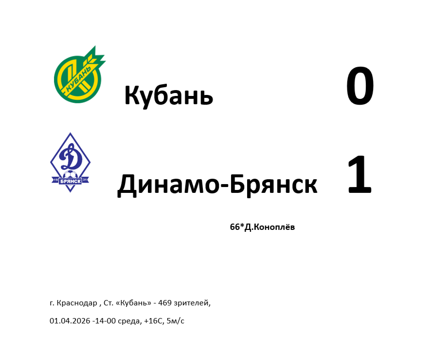 У "Кубани" на поле вышел бывший брянский динамовец Дмитрий Котов, сыгравший в своё время за наш клуб 16 матчей и отметившийся 1 голом.
