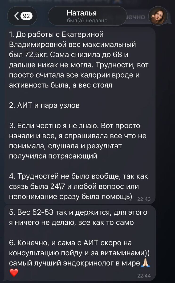 И все благодаря моей системе снижения веса! Как люблю читать ваши сообщения с результатами 😍