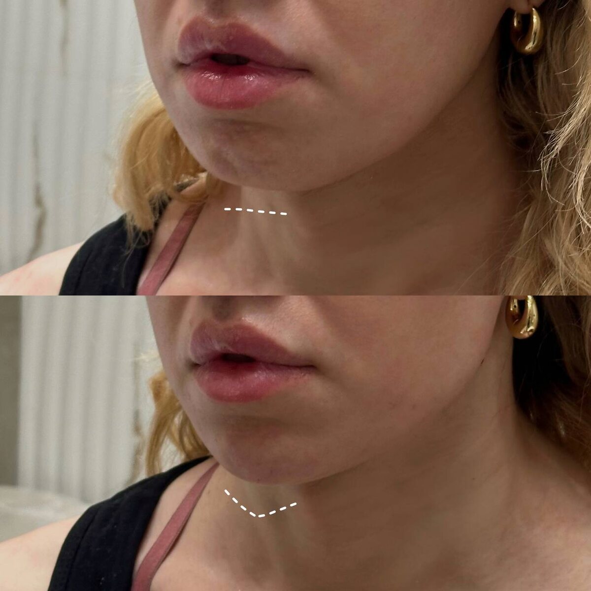 В данном случае пациентка обратилась с запросом на коррекцию подбородка. С помощью препарата Radiesse была выполнена деликатная работа: подбородок удлинён, скорректирована форма, подчеркнут контур, сглажены неровности и асимметрия, а также уменьшены проявления так называемой «апельсиновой корки». Препарат на основе гидроксиапатита кальция обеспечивает мгновенный объём и одновременно запускает процессы неоколлагенеза. Radiesse сочетает в себе свойства волюмайзера и коллагеностимулятора, обеспечивая структурную поддержку тканей и пролонгированный эффект до 12–18 месяцев. Результат выглядит естественно, эстетично и гармонично: сохраняется чёткость линий, улучшается качество кожи, а эффект постепенно усиливается за счёт стимуляции выработки собственного коллагена. ▶️ Если остались вопросы, задайте их в комментариях ▶️ Чтобы получить консультацию и записаться на прием, напишите t.me/beauty_way_clinic