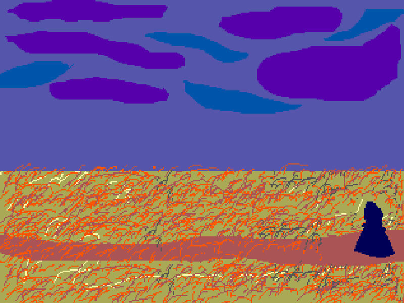Алиса продолжает идти по этой осенней дорожке. Теперь она совершенно точно уверена что это именно осеннее поле. Но нельзя сказать что так будет дальше. А дальше может быть и летний лес. Алиса в этом уверена совершенно точно. Вот дорожка. И она идет вперед. Или назад. Смотря как посмотреть. Так думает Алиса. Она ведь очень умная девочка. Желтая высохшая трава. Это точно про осень. И бурая высохшая трава. Это уже тем более ведь про осень. Трава в поле уже засохла. И дорога такая тихая и длинная. Высохшая хорошо утоптанная земля. Такая темно красная земля. Как будто глина или песок. Песок. Вот дует прохладный ветерок. Как будто что-то шепчет. Но понять что он хочет сказать – не получается. Ветерок прохладный. Это вот только и понятно. Еще немного и уже будет холодно. Но пока еще тепло. Тут так тихо. Это очень тихое место сейчас. Тихое поле. Только прохладный ветер колышет траву. И можно услышать что-то кроме тишины. Такой шум от высохшей травы. Когда дует ветер. Небо серое. И тучи. Но ес