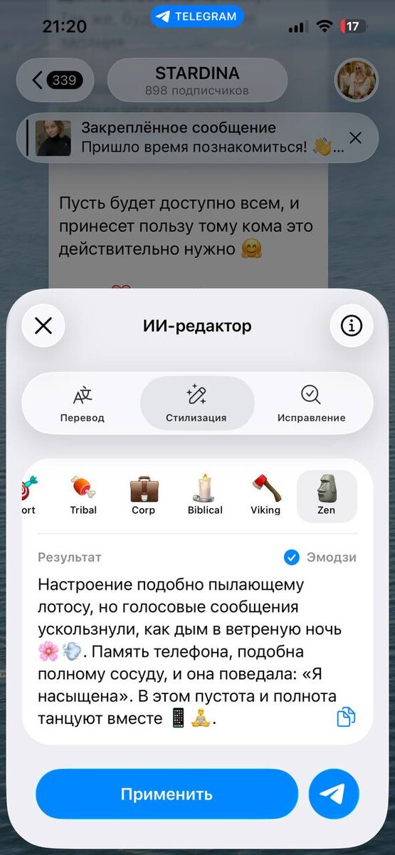 🌸💨. Память телефона, подобна полному сосуду, и она поведала: «Я насыщена». В этом пустота и полнота танцуют вместе 📱🧘. )))) прекрасное обновление в тг #ящитаю))) Завтра ждите обещанное ) Я стала философски относится к проволочкам Раньше очень бы нервничала и переживала Сейчас понимаю что значит так должно быть и сегодня весь день тратила на перенос файлов и тд ) в спокойном режиме