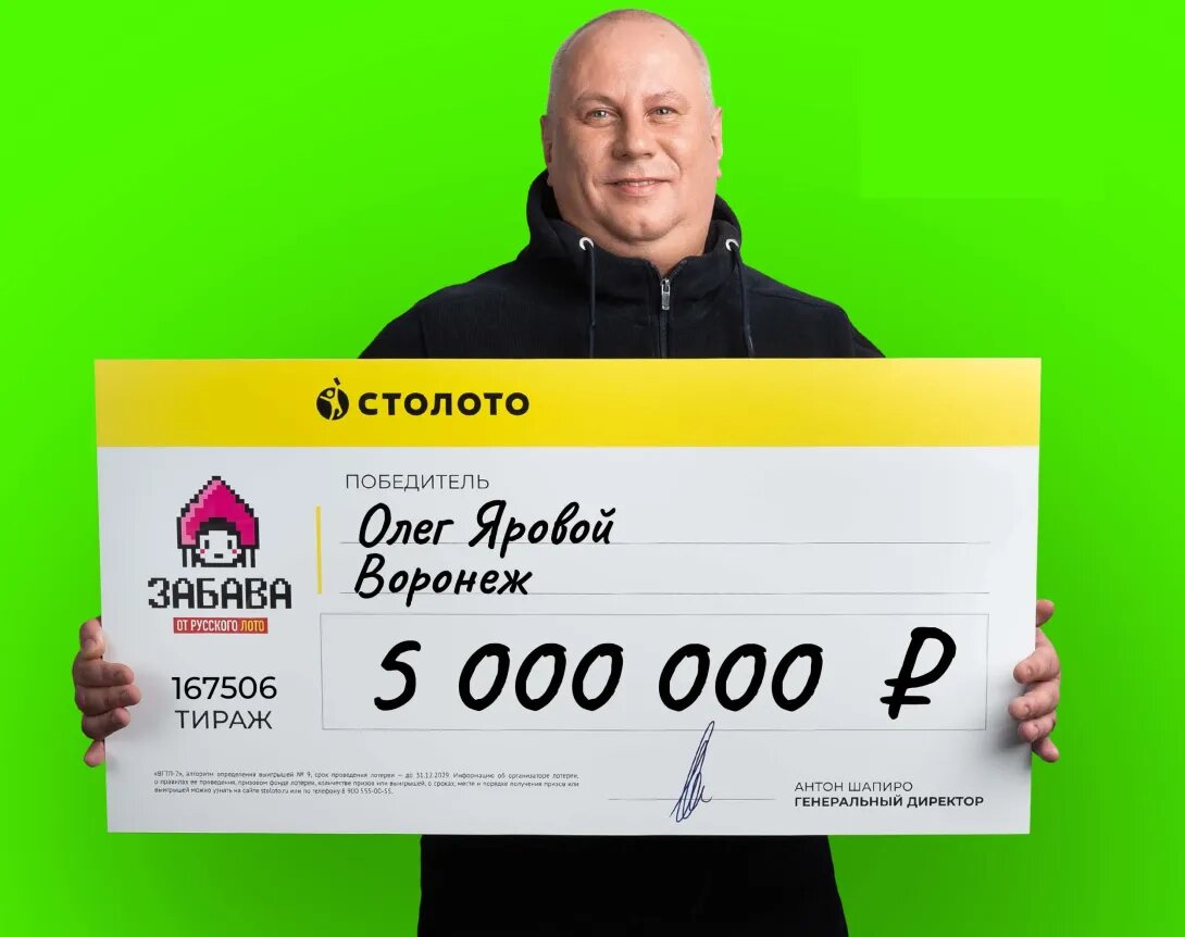 Житель Воронежа Олег Яровой стал обладателем крупного лотерейного выигрыша — 5 миллионов рублей. Победу он одержал в тираже лотереи «Забава от Русского лото», угадав все числа выигрышной комбинации. По словам победителя, интерес к лотереям у него появился несколько лет назад после того, как он увидел по телевидению рекламу государственных розыгрышей. С тех пор он периодически участвует в них. Накануне удачного розыгрыша Олегу приснился сон, в котором он выиграл крупную сумму. Уже на следующий день мужчина приобрёл несколько билетов, и один из них оказался выигрышным. - Я не поверил своим глазам, когда увидел выигрыш! — поделился он. Олег трудится менеджером по работе с юридическими лицами. Свободное время он предпочитает проводить в путешествиях по России, особенно любит Москву и Санкт-Петербург. Выигрыш победитель планирует разместить на банковском вкладе, чтобы в дальнейшем накопить на покупку квартиры в родном городе.