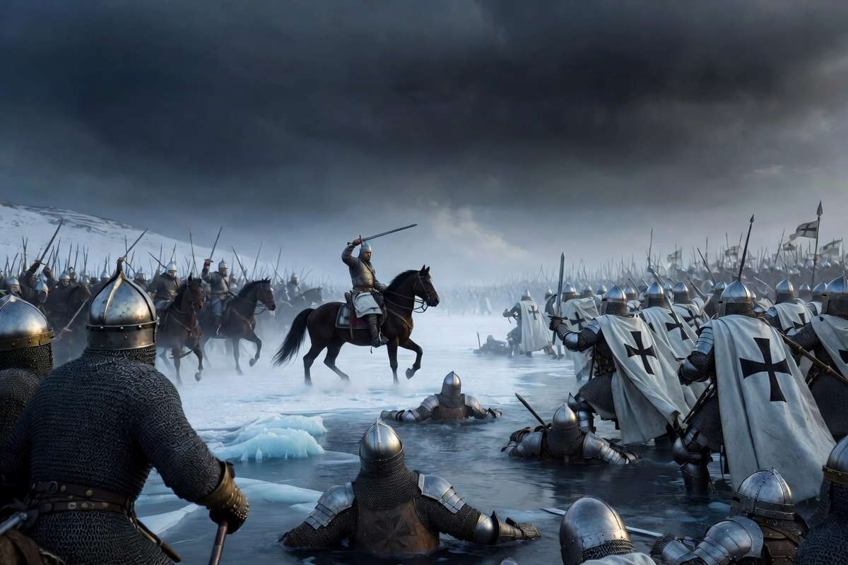 5 апреля 1242 года случилось сражение на Чудском озере Вокруг Ледового побоища (многим это сражение известно именно под таким названием) очень много мифов. А все потому, что большинство исторических источников о нем гораздо более позднего времени. Для многих современников представление о сражении ограничивается школьным учебником истории и картинкой из фильма Сергея Эйзенштейна «Александр Невский» – лентой выдающейся, но весьма далекой от реалий. В ней есть и тевтонские рыцари в рогатых шлемах, и ломающийся под ними лед, и героические воины во главе с князем Александром, и легендарная (во всех отношениях) фраза «Кто с мечом к нам придет, тот от меча и погибнет», и мощная музыка (или говоря современным языком, саундтрек) Сергея Прокофьева. Для начала ученые спорят о количестве участвующих в битве воинов. Долгие годы господствовала версия, что на Чудском озере бились чуть ли не 30 тысяч человек. Это, конечно, сильное преувеличение. Ливонский орден никогда не был многочисленным, да и Алек