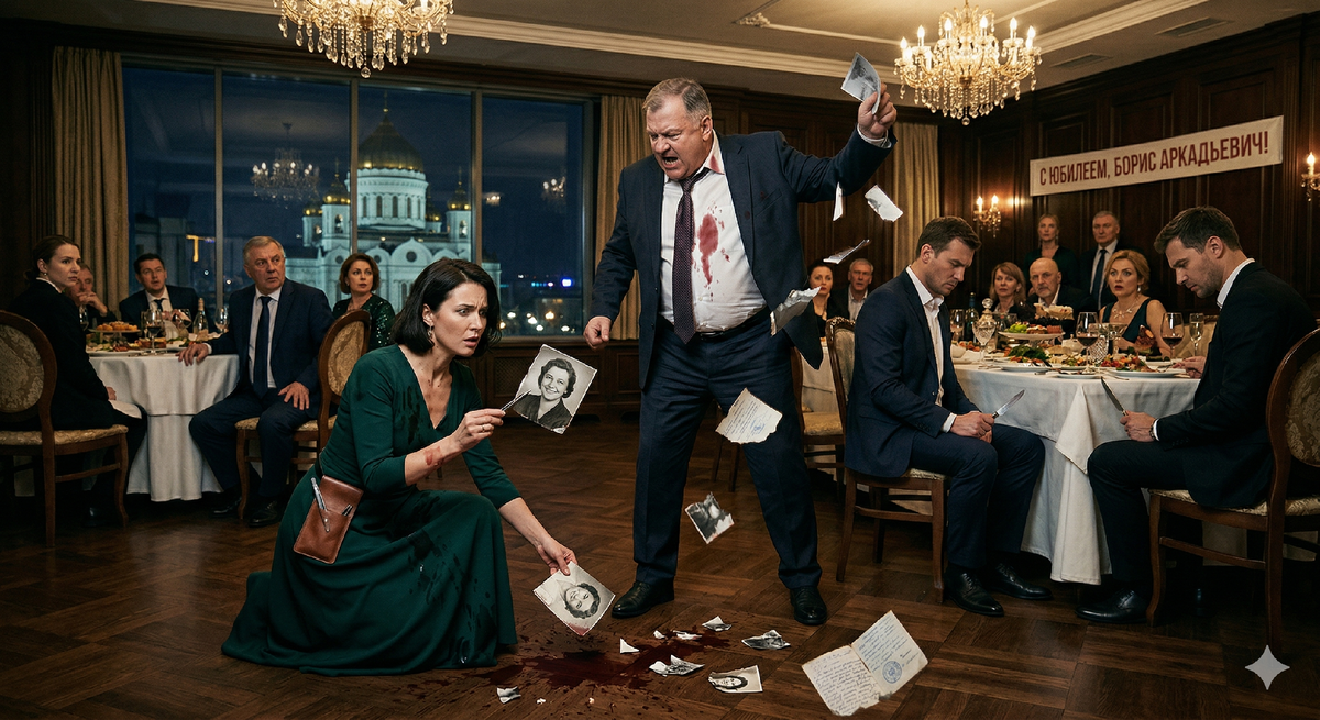 Борис Аркадьевич рванулся ко мне через стол, опрокинув бокал. Темно-красное вино плеснуло на его светлую рубашку, расплываясь огромным пятном, похожим на кровь.