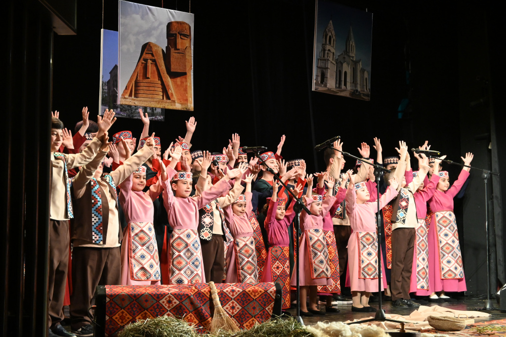 Это — дети Арцаха. Да они и не плакали. Помню 44-дневную Карабахскую войну, когда я сама оказалась в подвале недалеко от села Зуар. Тогда меня поразило одно: вокруг было много матерей с детьми — разного возраста, с младенцами на руках. Но ни один ребёнок не плакал. Ни один. Как будто даже в этом возрасте они уже понимали — нельзя, нужно быть сильными. Самым младшим участникам ансамбля «Арцахи баликнер» сегодня всего три-четыре года. Простая математика подсказывает: они родились в годы блокады Арцаха, длившейся с конца 2022 года по сентябрь 2023-го. Азербайджанской блокады, которая через голод, страх, оружие и потери вынудила людей покинуть родную землю — при молчаливом наблюдении мира. А те, кто постарше, вместе с матерями и бабушками сидели в подвалах, делили страх и голод, учились выживать тогда, когда детство должно было быть совсем другим. И именно поэтому песни ансамбля «Арцахи баликнер» звучат иначе. Глубже. Больнее. Это — дети Арцаха. Да они и не плакали. Помню 44-дневную Караба