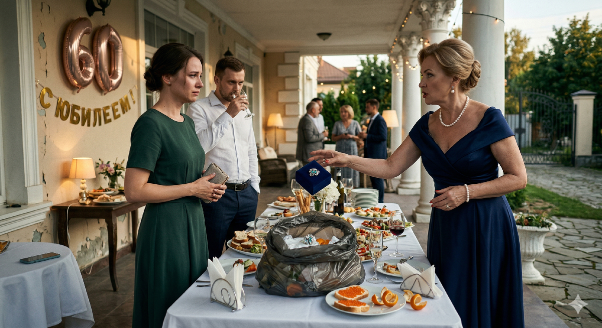Я стояла на террасе, сжимая в ладони коробочку. Бархат был недорогим, жестким, но внутри лежала вещь, на которую я откладывала три месяца. Настоящее серебро, старая работа, крошечная бирюза цвета выцветшего неба над Тагилом. Мой талисман. Я купила её себе на первую премию в банке, когда закрыла самый сложный кейс по взысканию. Потом решила — пусть у неё будет. Юбилей всё-таки, шестьдесят лет.