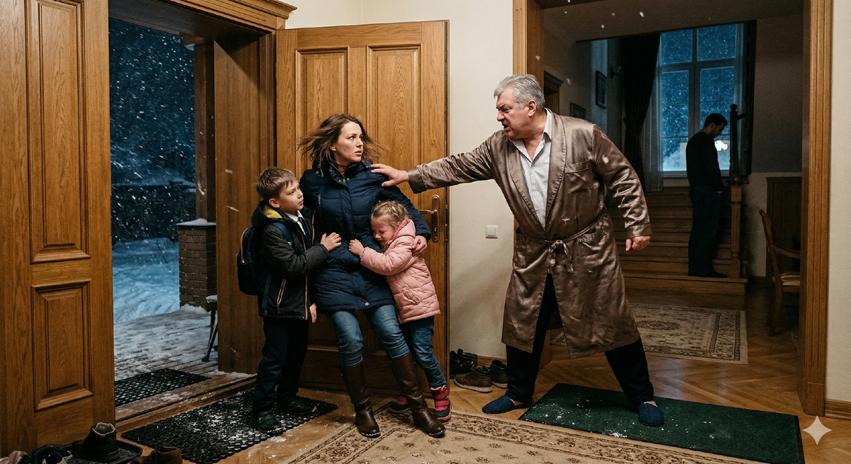 Я стояла в коридоре, прижимая к себе Соню. Дочка вцепилась в мои джинсы так сильно, что костяшки её маленьких пальцев побелели. Рядом застыл Данил, ему десять, он уже всё понимал, но только молча переводил взгляд с деда на меня. В руках у сына был школьный рюкзак — мы как раз собирались на секцию.