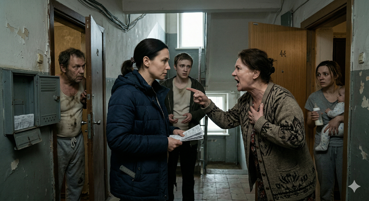 Дверь сорок второй квартиры приоткрылась. Глеб, вечный пенсионер в застиранной майке, высунул нос, жадно втягивая назревающий скандал. Из сорок четвёртой вышла Марина — молодая мать с вечным пучком на голове и бледным лицом.