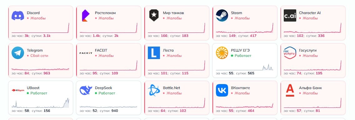 ⚡️В Рунете серьезные проблемы! Пользователи сообщают о трудностях с доступом к множеству популярных сервисов