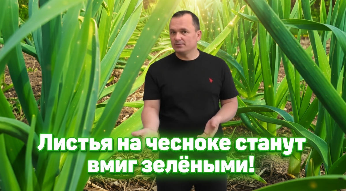 Друзья, очень-очень многое будет зависеть от того, насколько вы сейчас, на этом этапе (до конца мая), сможете развить зелёную массу на чесноке. Чем больше будет зелёной массы — ну, до нормальных пределов, конечно, — тем крупнее урожай потом соберёте. У нас перья на чесноке вырастали в высоту 80–90 сантиметров. И затем мы собирали очень-очень крупные головки — и всё благодаря вот такой подкормке.