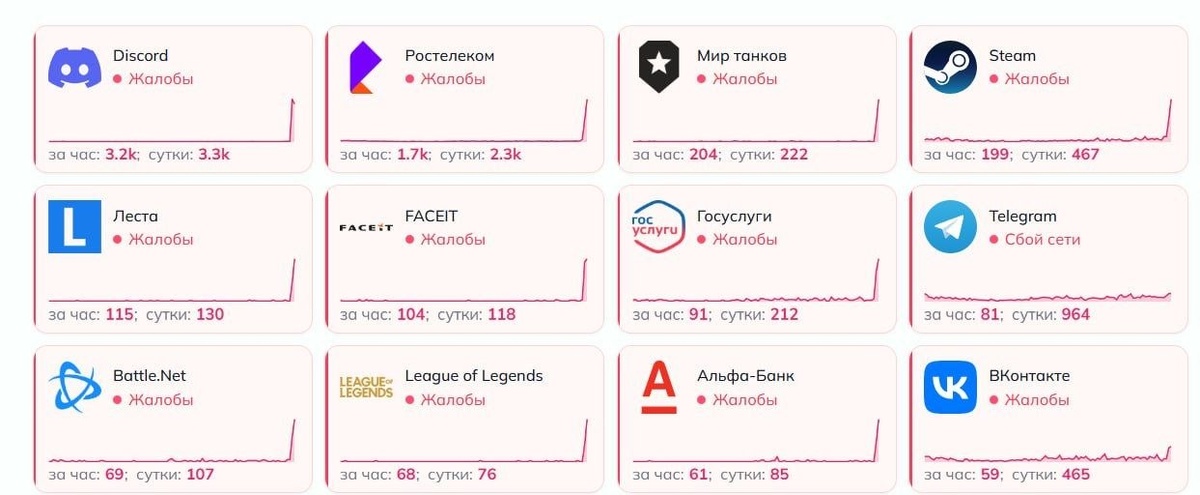 Прямо сейчас фиксируются проблемы с доступом к крупным сервисам. По данным пользователей, «легли»: Steam, Discord, ВКонтакте, Госуслуги Примерно половина рунета недоступна. Проблемы носят массовый характер. Работают ли у вас эти сайты? Отпишитесь в комментариях: где вы находитесь и что не открывается? #сбой #интернет #steam #discord #вконтакте #новости