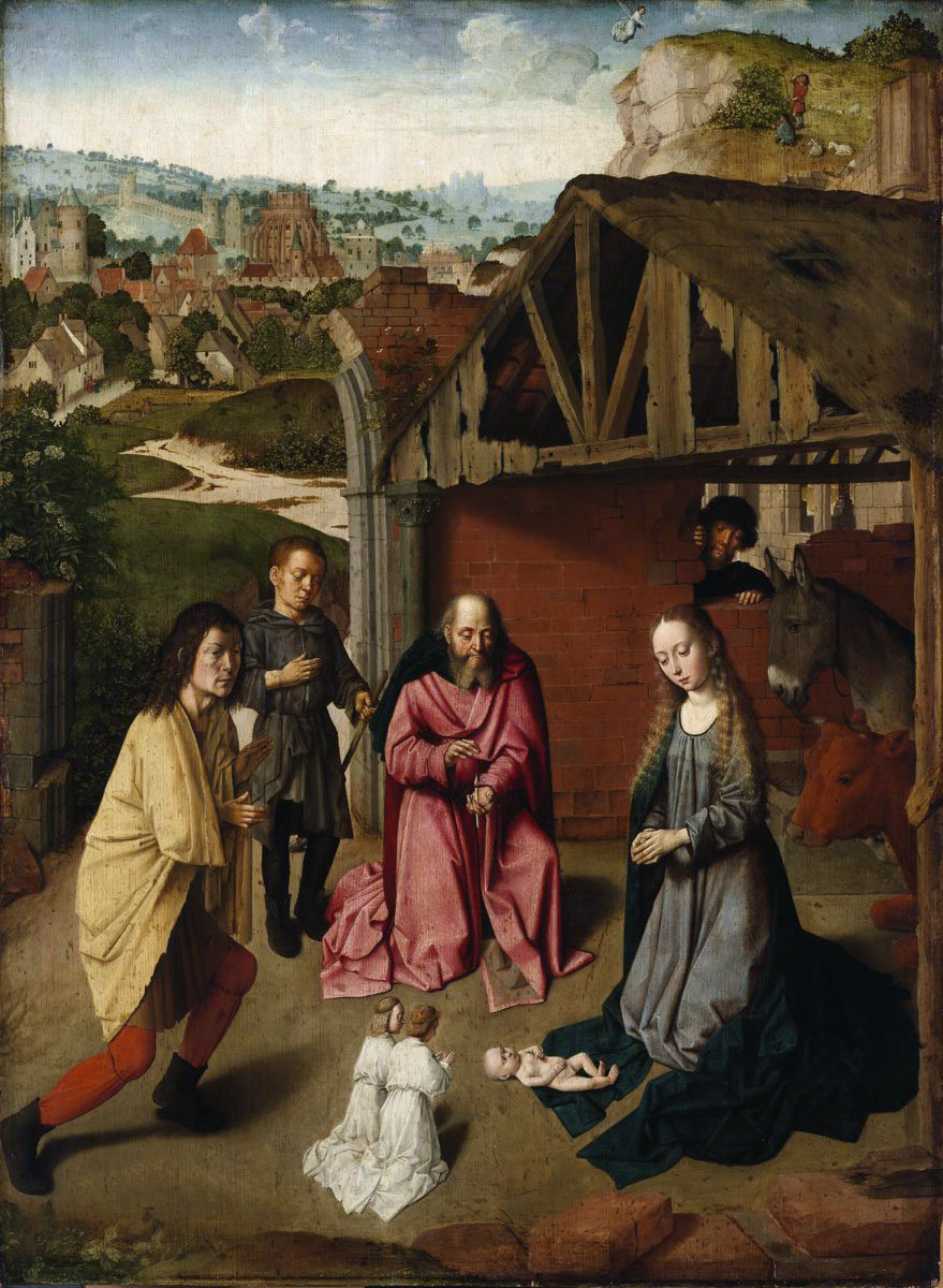 Герард Давид (ок. 1460−1523) был последним великим мастером, практиковавшим стилистическую традицию ранней нидерландской живописи, зародившуюся благодаря Яну ван Эйку (1385/90-1441). Этот стиль радикально отличался от подхода итальянских современников, которые, кстати, были восторженными поклонниками северной живописи; именно от них они переняли искусство масляной живописи. Но это техническое новшество, придающее поверхности стеклянный блеск, подобный прозрачному драгоценному камню, — лишь один из бесчисленных способов, которыми эти картины очаровывают зрителя. Эстетика "малое — прекрасно", тщательное и с любовью выполненное исполнение каждой мельчайшей детали изображенного мира — вот что делает этот изысканный стиль таким ярким. Подобно тому, как городской пейзаж на заднем плане этой картины оживлен всевозможными мелкими деталями, показанная история обогащена множеством моментов, которые позволяют приблизить чудо к зрителю, чтобы он мог лучше его прочувствовать. Стоит обратить вни