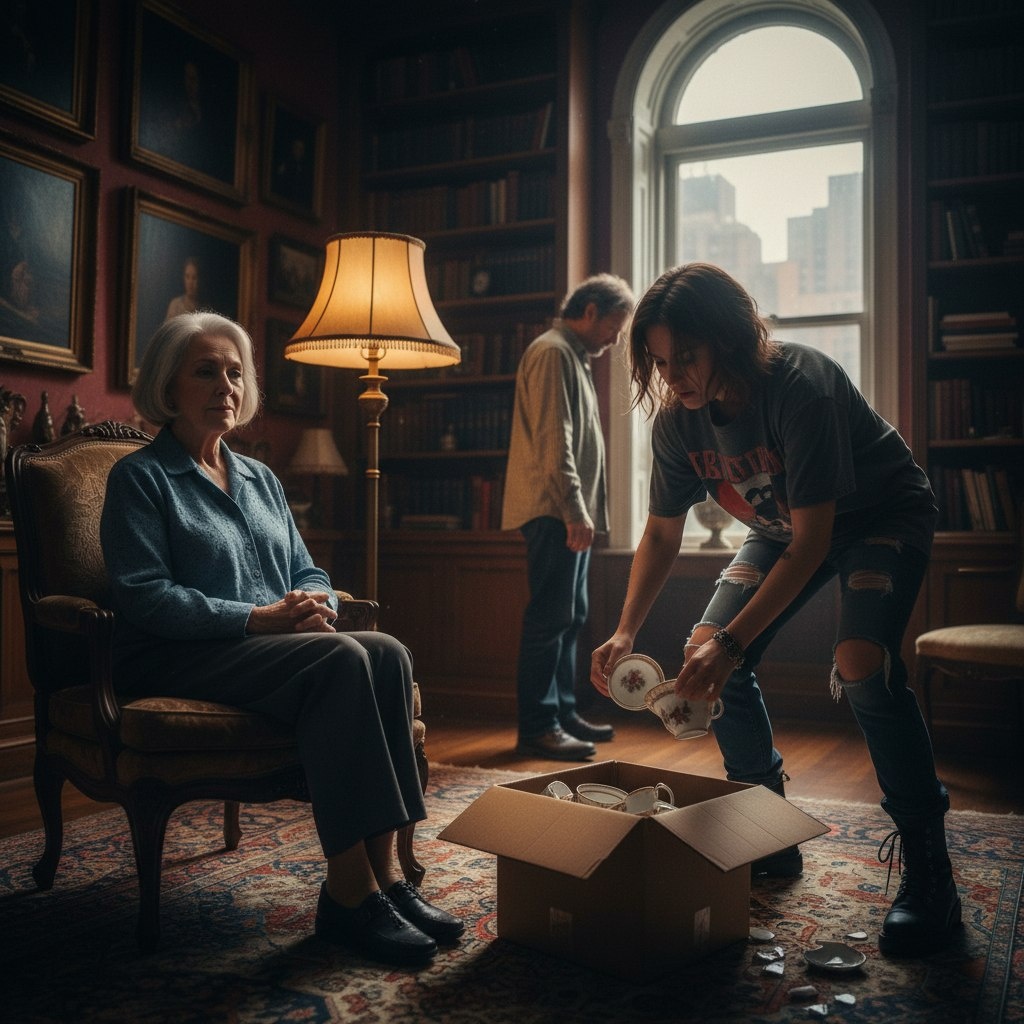 Она деловито подошла к моему антикварному серванту, достала картонную коробку, которую привезла с собой, и начала бесцеремонно сгружать туда мой любимый фарфоровый сервиз — подарок покойного мужа на нашу серебряную свадьбу.
