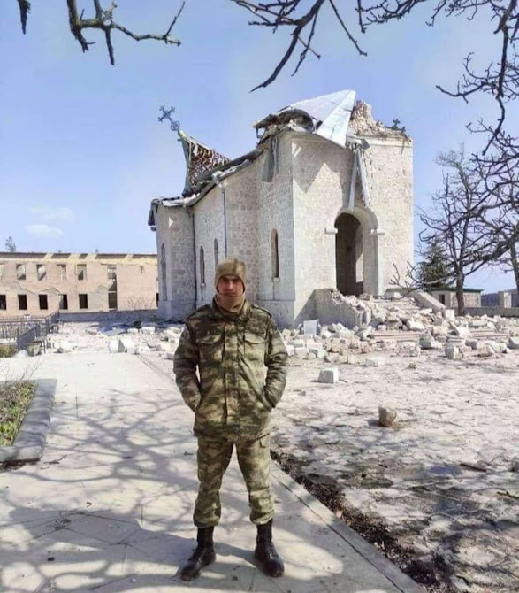 "Верного сына" Армянской Апостольской Церкви Никола Пашиняна не интересует тот факт, что азербайджанские варвары взрывают монастыри и церкви в Арцахе? Или он привык воевать только с армянскими священнослужителями?․․ Армянские СМИ продолжают публиковать тревожные сообщения из Арцаха (Нагорного Карабаха), где власти соседнего Азербайджана, воодушевленные поддержкой Турции и некоторых других стран, продолжают уничтожать древние армянские памятники, которые в Арцахе исчисляются тысячами. На представленных здесь снимках вы видите результаты дикостей азербайджанских варваров в оккупированных районах Арцаха - армянского Карабаха. Один из этих выродков позирует на фоне армянской церкви Канач Жам в древнеармянском городе Шуши, оккупированном Азербайджаном при содействии властей вышеуказанных стран. Как видите, взорван купол и разрушены стены армянской церкви. Это не первый случай дикости и варварства властей Азербайджана, поощряемых известными внешними силами - обстрелян также храм Казанчецоц в