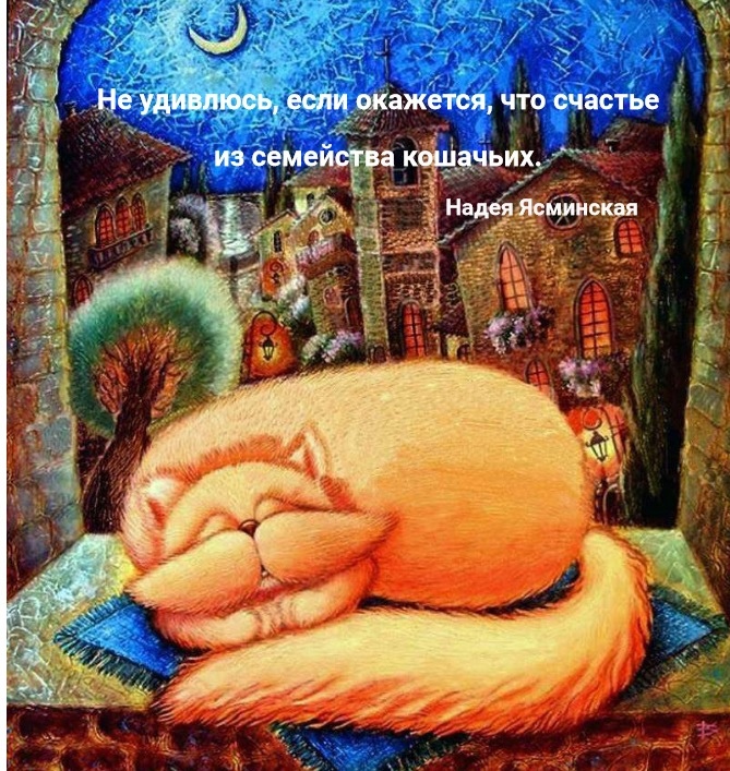 С лёгкой руки Маняшиной бабушки, окружающие стали называть рыжего котом счастья. И теперь при встрече, вместо обсуждения жизненных неурядиц, наперебой рассказывали друг другу разные истории про усатых-полосатых. А некоторые даже стали подумывать, не завести ли им свою собственную кошку.