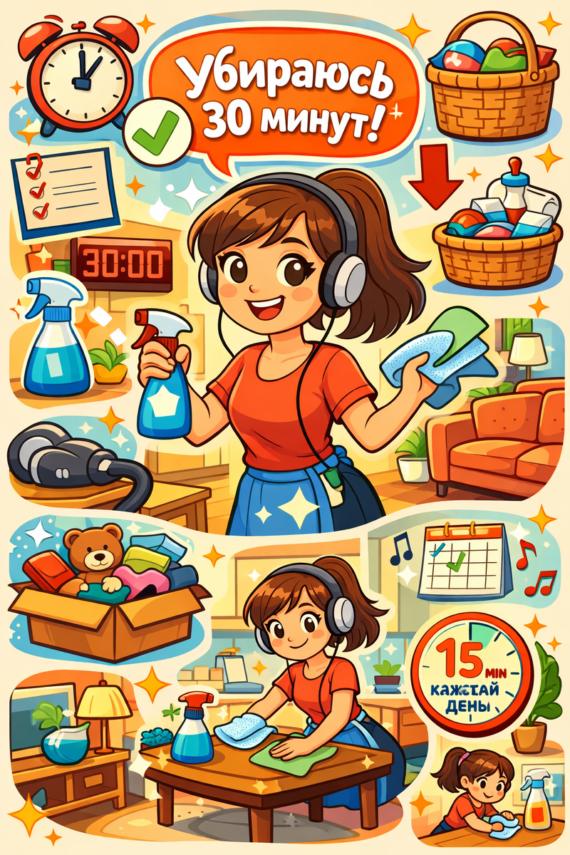30 минут — это не про идеальную чистоту. Это про контроль, лёгкость и привычку. И честно — это намного лучше, чем откладывать уборку на определенный день, а потом уставать ещё сильнее.