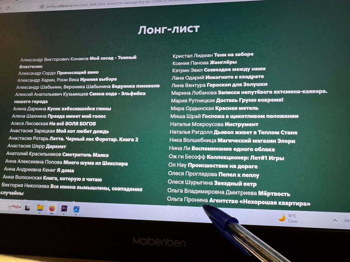 Когда приходит первое признание... мой роман в лонг листе конкурса!