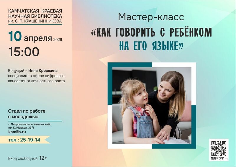 » Встреча для родителей, которые хотят не «лепить» идеального ребенка, а понимать того, который есть, пройдет 10 апреля в Камчатской краевой научной библиотеке им. С.П. Крашенинникова, передает агентство «КАМЧАТКА-ИНФОРМ» со ссылкой на сообщение библиотеки. Начало встречи – в 15 часов пятницы. Вход свободный. Возрастное ограничение 12+. «Участники поговорят о том, как знание природных особенностей помогает снижать напряжение, находить радость в совместном времяпрепровождении и создавать в семье атмосферу, где каждый чувствует себя своим», - говорится в сообщении. На встрече обсудят темы: Почему дети такие разные: как природные особенности влияют на поведение, учебу, общение и увлечения. Как перестать сравнивать и начать замечать сильные стороны: увидеть уникальность своего ребенка там, где раньше видели просто «характер». Как поддерживать интересы ребенка: выбирать кружки, книги, занятия и семейный досуг, которые подходят именно ему. Как выстроить диалог без давления: говорить