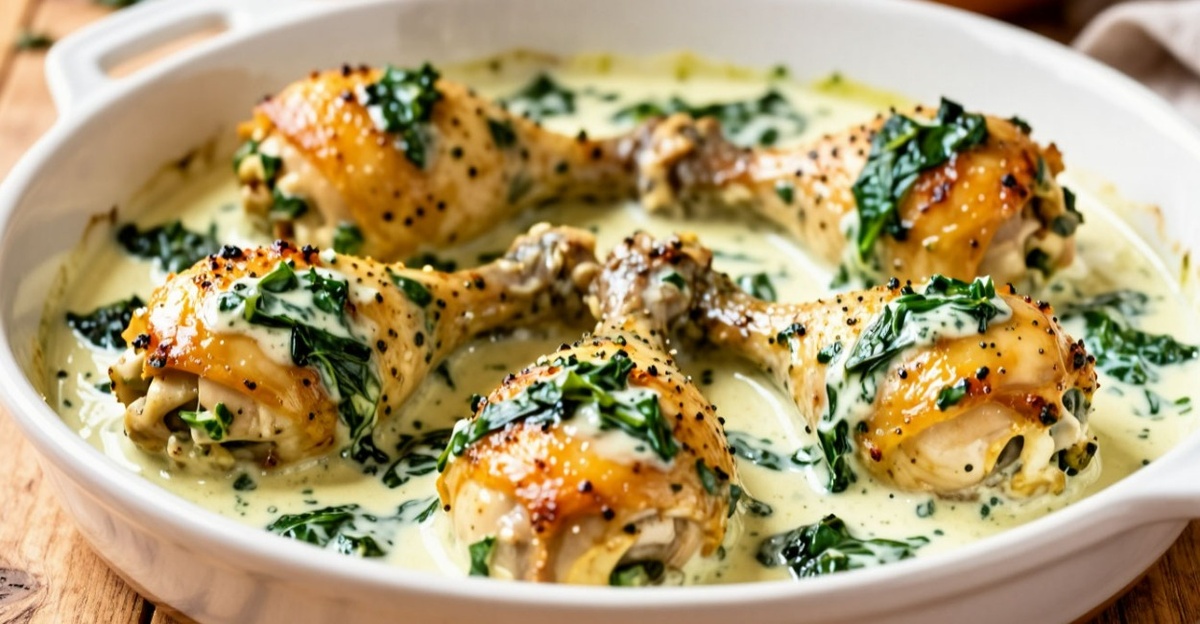 Куриные голени — продукт доступный, но коварный. При обычной жарке они часто выходят сухими, с розовыми прожилками у кости. Знакомая ситуация? Многие уже махнули рукой и перешли на филе. А есть простой рецепт, который превращает обычные ножки в нежное, тающее во рту блюдо, достойное на праздничный стол. Это рецепт Константина Ивлева — куриные голени в сливочно-чесночном соусе со шпинатом и копчёным сыром чечил. Сочная курица получается всегда, даже у тех, кто раньше боялся возиться с курятиной. Секрет в том, что куриное мясо требует деликатного подхода. При жарке на сковороде внешняя часть быстро схватывается корочкой, а внутренняя остаётся сырой. Чтобы прогреть до конца, приходится держать дольше, и сок уходит. Запекание в соусе решает эту проблему: мясо готовится в ароматной жидкости, пропитывается и остаётся невероятно нежным. А шпинат и сыр чечил добавляют «нажористость» и делают блюдо ресторанным. На сковороде разогреть растительное масло. Куриные голени посолить, поперчить и обжа