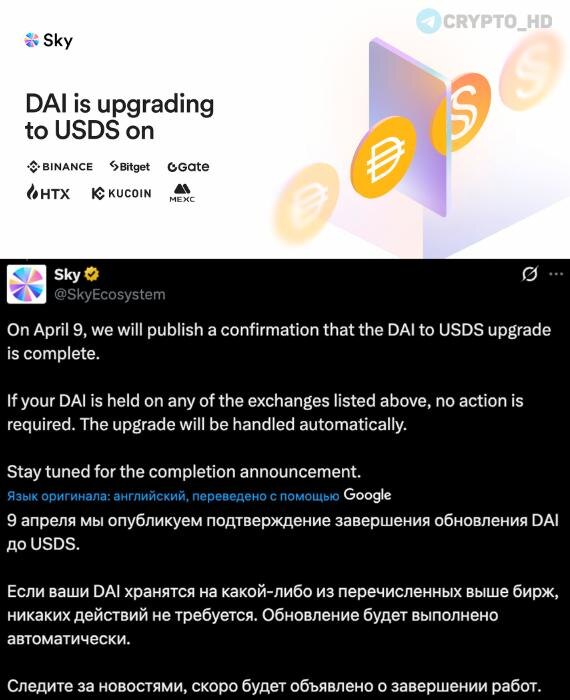 Крупные биржи уже сегодня начнут автоматическую конвертацию #DAI в #USDS в соотношении 1:1. Это финальный этап биржевой части ребрендинга MakerDAO в Sky Protocol. 9 апреля команда Sky обещает опубликовать подтверждение апгрейда DAI → USDS. Ранее: MakerDAO больше нет Crypto Headlines