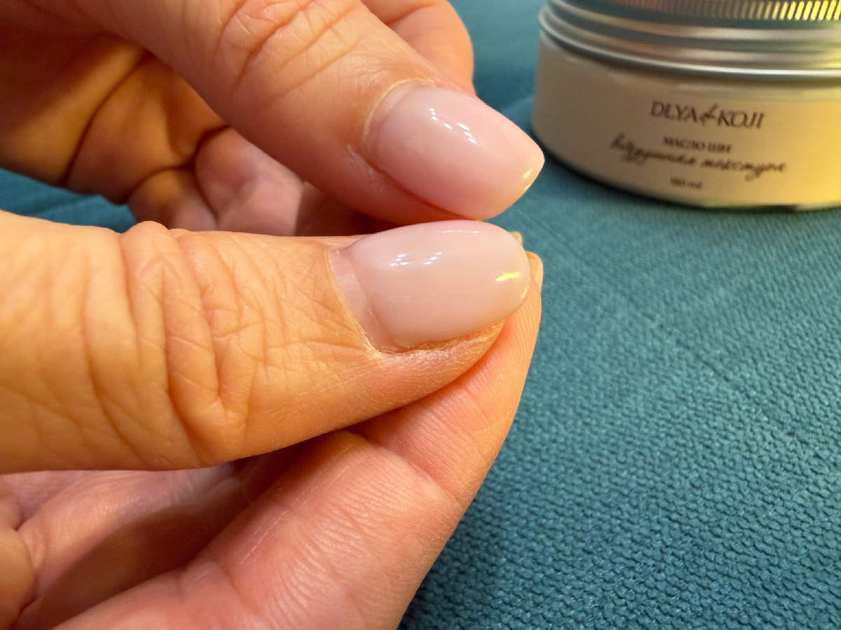 Многие на этот момент даже не обратят внимание, а для меня он один из главных маркеров неухоженности. Когда смотрю женские отзывы на маркетплейсах, каждое второе фото триггерит. И да, это мой индивидуальный «загон», и никто не обязан ему соответствовать. Как говорят психологи: если вам что-то в ком-то не нравится, это ваши проблемы, над собой работайте, а от человека отстаньте. В общем, если вдруг вас тоже это бесит и вы ищите методы, как исправить, я иду к вам😀 Грубая кожа вокруг ногтей и искусанная кутикула — ужасное явление. Можно надеть на руки «злато-серебро», но когда этим зонам не уделяется внимание, блеск драгоценного металла не украсит. Я уважаю гель-лак и свежий маникюр с ним красив, но чтобы в промежутках между сеансами он выглядел приятно, нужен уход. У меня жутко сохнет кутикула и я всегда держу дома 150 средств для заботы о ней. Посмотрите, как преображаются руки всего за минуту. Да, гель-лак уже надо обновлять, но кожа вокруг ногтя ухоженная и руки не стыдно показывать.