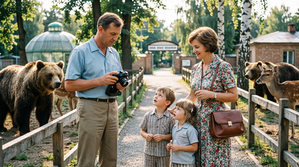 В Советском Союзе поход в зоопарк был для нас настоящим праздником. Мы собирались всей семьей с самого утра и заранее планировали маршрут. Эти простые традиции до сих пор хранятся в моей памяти. Я всегда просыпался раньше всех и сразу шел проверять фотоаппарат. Пленка должна была быть заряжена с вечера, чтобы не тратить время на сборы. Жена доставала из шкафа чистую одежду и аккуратно раскладывала вещи по сумкам. Дети бегали по квартире и с нетерпением ждали момента выхода за порог. Мы тщательно проверяли билеты и деньги, чтобы ничего не забыть в спешке. У главного входа мы покупали пропуска и сразу направлялись к крупным вольерам. Дольше всего я стоял возле медведей и не мог оторвать от них взгляда. Дети прижимались к ограждению и внимательно следили за каждым движением животных. Потом мы переходили к львам и тиграм, которые лениво потягивались на траве. Я смотрел на этих мощных хищников и удивлялся их спокойному поведению. Мы обязательно останавливались у интересных клеток и доставал