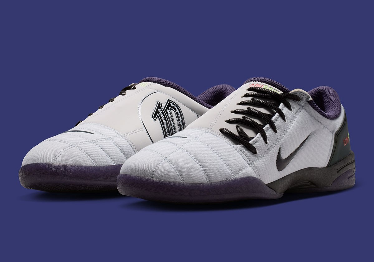 Nike Total 90 III может пережить самый значимый момент в своей истории с коллаборацией Kids of Immigrants T90 Mule, которая выйдет в двух расцветках к чемпионату мира по футболу 2026 года. Но это тема для другого дня. Сегодня речь пойдёт о новой модели с уникальными деталями, представленной официальными изображениями. Наиболее интересная деталь — надпись «10» на латеральной стороне вместо привычного «90», выполненная грубым чёрным шрифтом с элементами колючей проволоки внутри. Стельки также привлекают внимание: одна украшена огненным изображением инь-ян, другая — граффити-тегом в стиле «Swoosh». Пятка отделана отражающим материалом Green Abyss, а основная часть верха выполнена из Pure Platinum кожи и канвы. Тёмно-фиолетовая подкладка и подошва дополнены восковыми чёрными шнурками. Модель может стать частью .SWOOSH релиза, игрокским вариантом для Неймара или Килиана Мбаппе (оба носят футболку с номером 10), или чем-то ещё. Релиз
