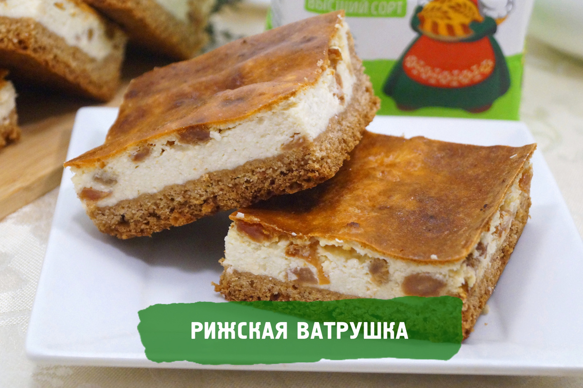 Рижская ватрушка — это нежный открытый пирог с творожной начинкой на песочном тесте. Уникальность рецепта в идеальном балансе рассыпчатой основы и воздушной творожной массы. Особый шарм выпечке придает аромат ванили и корицы, а так же золотистая корочка. Время приготовления: 1 час. Ингредиенты: 500 г творога, 200 г пшеничной муки высшего сорта ТМ «Алейка», 200 г сливочного масла, 140 г сахара, 4 яйца, 50 г изюма, 2 ст. ложки сливок, 1/2 ч. ложки ванильного сахара, 1/2 ч. ложки разрыхлителя, 1/2 ч. ложки корицы, 1/4 ч. ложки соли. Приготовление: Приятного аппетита!