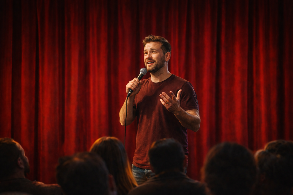 Ещё хорошо заходят наблюдения за городом и локальными особенностями. Если выступаешь в конкретном городе, можно мягко пошутить про пробки, погоду, местных жителей или известные места. Это создаёт ощущение, что комик говорит именно с этой аудиторией, а не с любой другой. Например, в большом городе можно развивать про то, как все жалуются на транспорт, но при этом никто не хочет переезжать в пригород. Или про соседей, которые то слишком громко слушают музыку, то слишком подозрительно тихо.