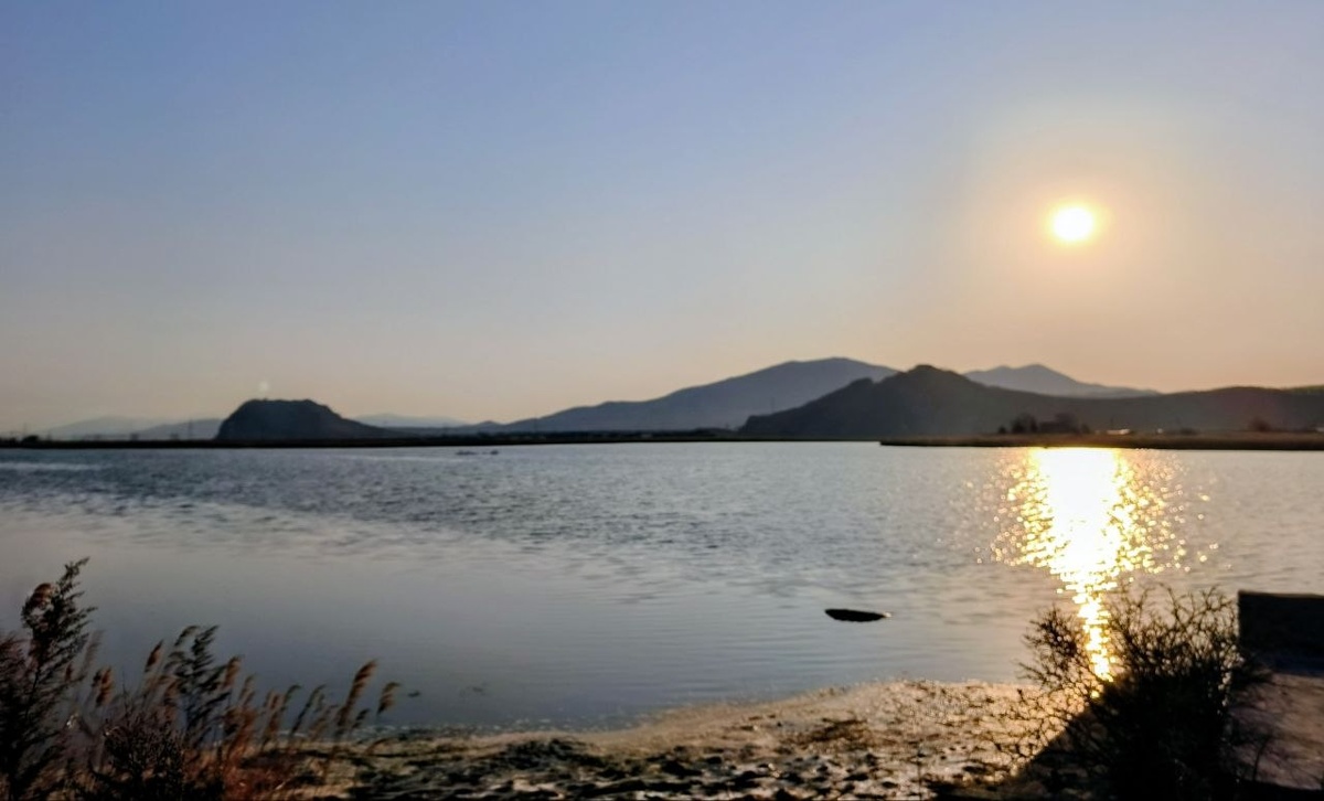 Красивейший восход над устьем реки Партизанская возле древнего рифа, а ныне горы Сестра и горы Брат. Фото сделано на смартфон Xiaomi Redmi NOTE 15 Pro 5G. Стоковая камера. Красиво у нас...